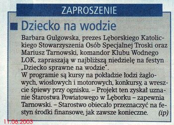 26.06.2003 DB Artykuł o imprezie "Dziecko sprawne na wodzie".