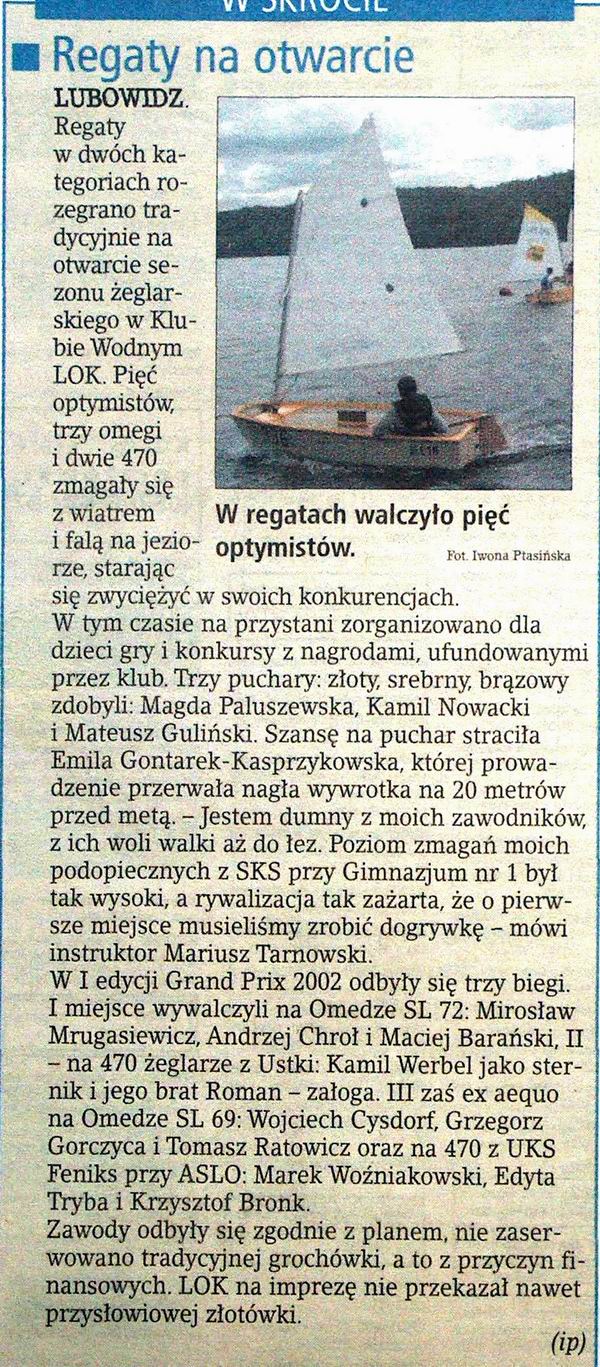 mag_01_a.jpgObszerny artykuł z 2001 o klubie str2 |  mist_00.jpgI Mistrzostwa Okręgu w klasie Optymist 2000 |  mist_01.jpgII Mistrzostwa Okręgu w klasie Optymist 2001 |  mist_02.jpgIII Mistrzostwa Okręgu w klasie Optymist 2002 |  moje_02.jpgA to artykuł o mnie z 2002 |