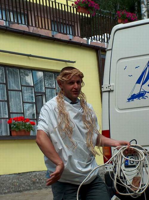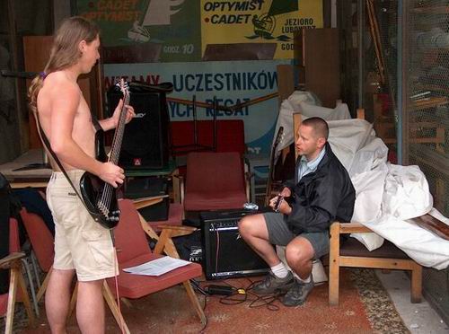 przygotowania do wieczornej imprezy (st.j. Wojciech Cysdorf na basie, m.I.Ż.