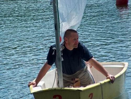 regatach OLD BOY-ów. Wpływa na metę. (Miałem dobry żagiel - większy niż