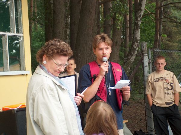 KWLOK1220.JPGO godzinie 11:00 komandor Klubu Wodnego (organizator) uroczyście powitał przybyłych gości |  KWLOK1221.JPGoraz objaśnił zasady bezpieczeństwa na wodzie . |  KWLOK1222.JPGPani Barbara Gulgowska (organizator) omówiła program imprezy |  KWLOK1223.JPGPrzygotowania poszczególnych komisji do rozpoczęcia konkursów |
