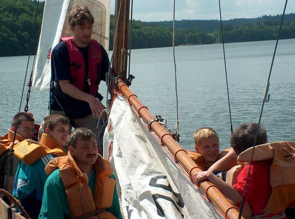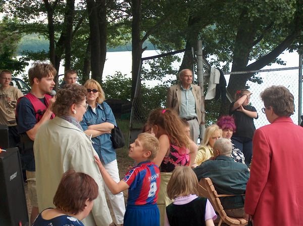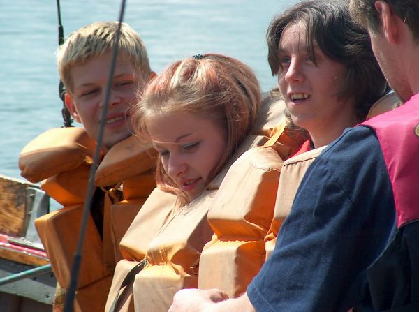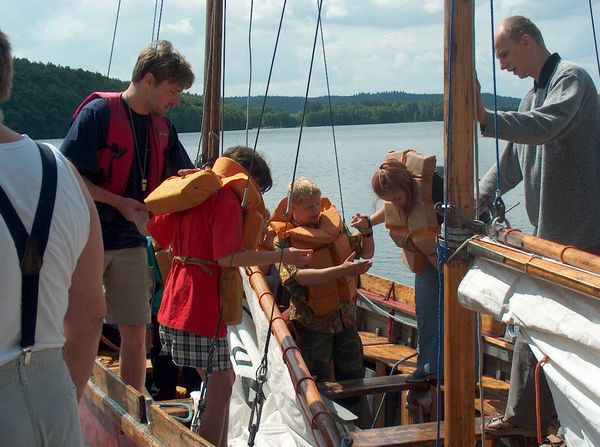 KWLOK1228.JPGZaokrętowanie naszych gości |  KWLOK1229.JPGTomasz Kossowski, Małgorzata Maciulewicz pierwszy raz na żaglach |  KWLOK1230.JPGGrota staw |  KWLOK1231.JPGW tym samym czasie w klubie odbywały się regaty: Grand Prix 2003 oraz Regaty najmłodszych o puchar komandora klubu. II edycja |