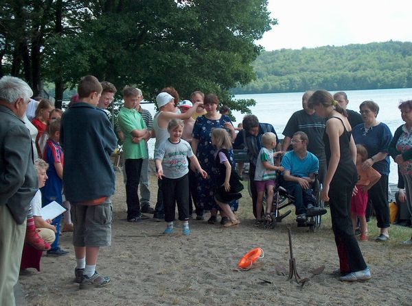 KWLOK1224.JPGOśrodek Pomocy Społecznej (z ul. Kossaka w Lęborku) |  KWLOK1225.JPGTowarzystwo w przerwach pomiędzy pływaniem, konkurencjami itd. |  KWLOK1226.JPGOdpoczywała przy ognisku lub prażyło się na pomostach |  KWLOK1227.JPGPrzygotowania pierwszej ekipy do żeglowania na DZ-cie |
