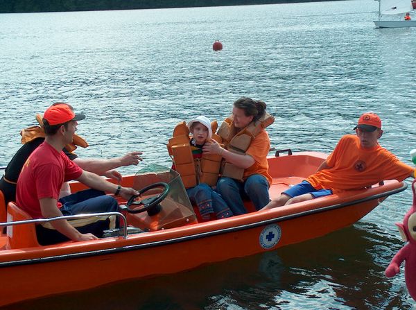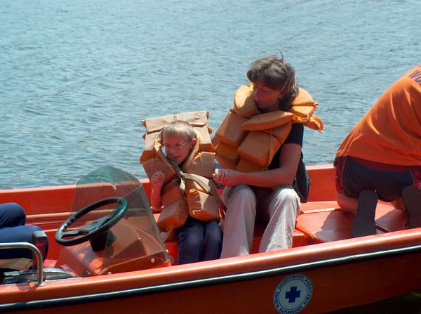 KWLOK1236.JPGRatownicy z Lęborskiej drużyny WOPR przy CSiR w Lęborku wozili chętne osoby na motorówce z silnikiem 30KM Na zdjęciu Dominik Flisikowski z mamą |  KWLOK1237.JPGZałoga DZ: Mariusz Tarnowski, Dariusz Pobrucki, Ronald Ramczyk oraz Tomasz Pastuszko w oczekiwaniu na kolejnych gości |  KWLOK1238.JPGWoda wzmaga apetyt na szczęście organizatorzy to przewidzieli |  KWLOK1239.JPGRobert Degler i jego załoga startują z kolejnymi uczestnikami imprezy (Justynka Bednarz z rodzicami) |