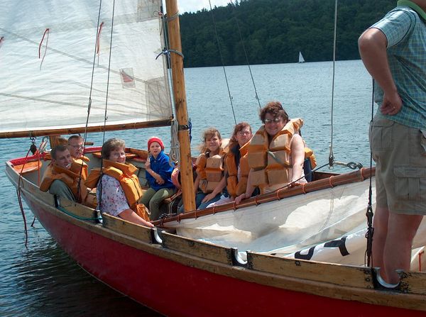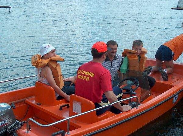 KWLOK1240.JPGPowrót z rejsu |  KWLOK1241.JPGAdam i Paweł z Ośrodka Szkolno Wychowawczego w Lęborku na motorówce |  KWLOK1242.JPGPrzez DZ-tę tego dnia przewinęło się sporo osób |  KWLOK1243.JPGŻagle staw - za chwilę ponownie padnie komenda |