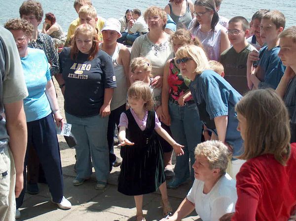 KWLOK1244.JPGkolejni odważni pasażerowie m.in. Magda Jóźwikowska |  KWLOK1245.JPGOśrodek Szkolno Wychowawczy pod żaglami |  KWLOK1246.JPGKonkurencja - rzut piłeczką do tarczy |  KWLOK1247.JPGP. Basia nadzoruje prawidłowy przebieg konkurencji - rzuca Joanna Klimko |