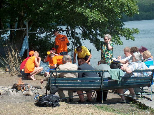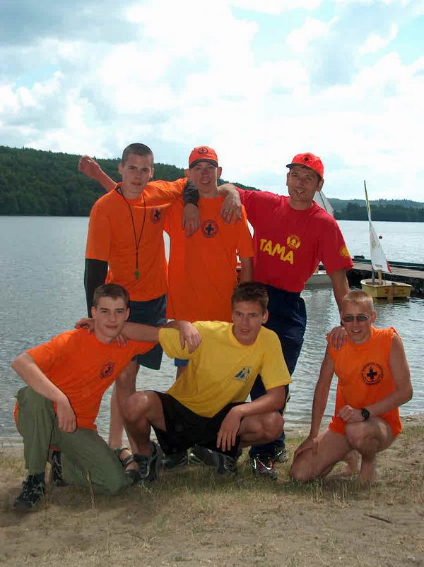 KWLOK1256.JPGLęborska drużyna WOPR, która zabezpieczała imprezę: Robert Degler, Michał Marakut, Krzysztof Sadkowski, Michał Obałek, Łukasz Paluszewski, Bartosz Pakuła |  KWLOK1257.JPGOdczyt protokołu komisji sędziowskiej - Barbara Gulgowska |  KWLOK1258.JPGGoście nie pozwolili zarówno żeglarzom jak i ratownikom wrócić z imprezy na czczo. |  KWLOK1259.JPGWręczanie nagród dla zwycięzców poszczególnych konkurencji |