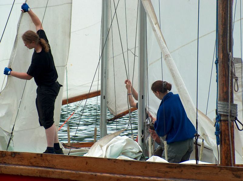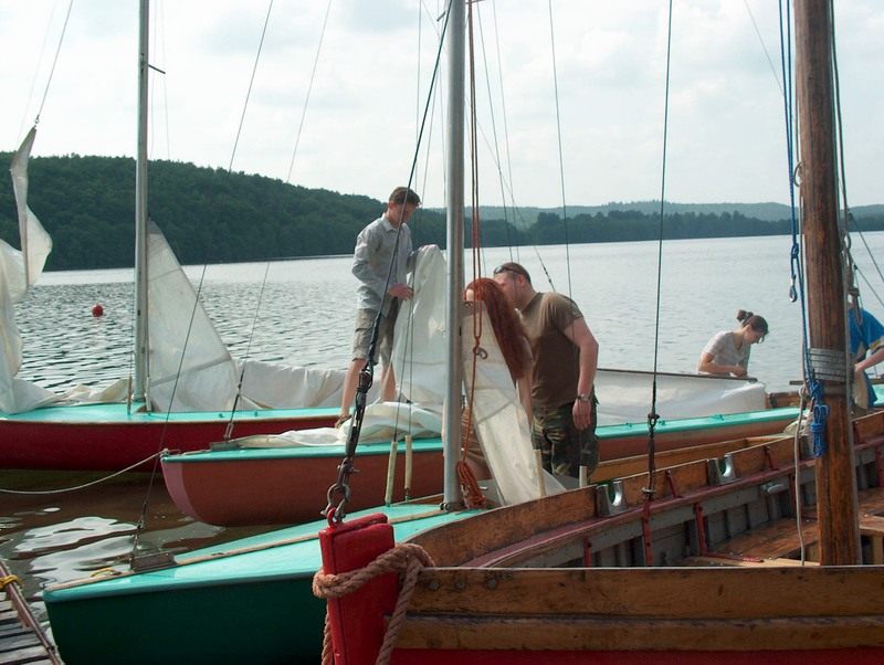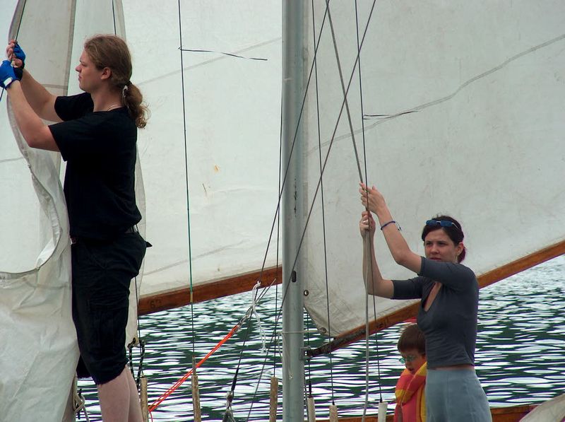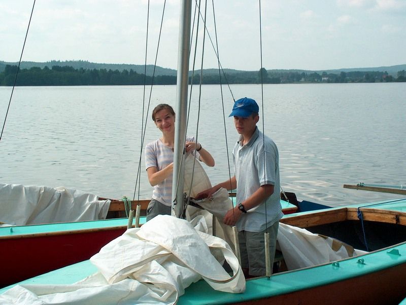 Karol Ratowicz oraz Monika i Sebastian Odrowąż Piramowicz - załoga SL-71 w trakcie taklowania łajby