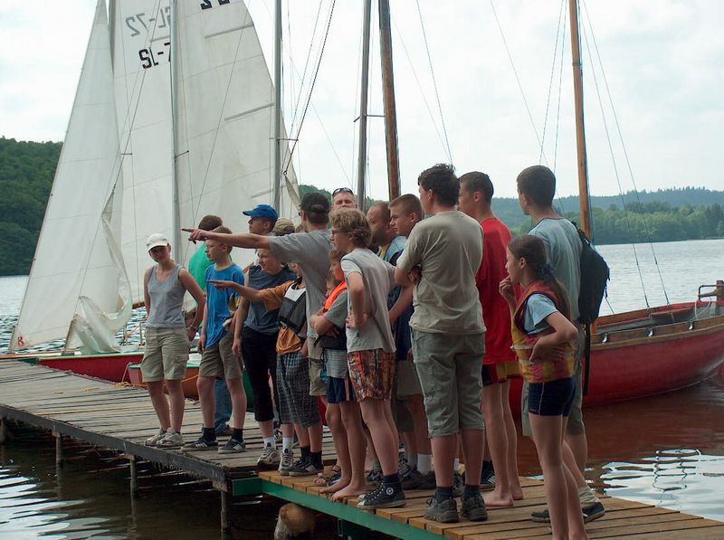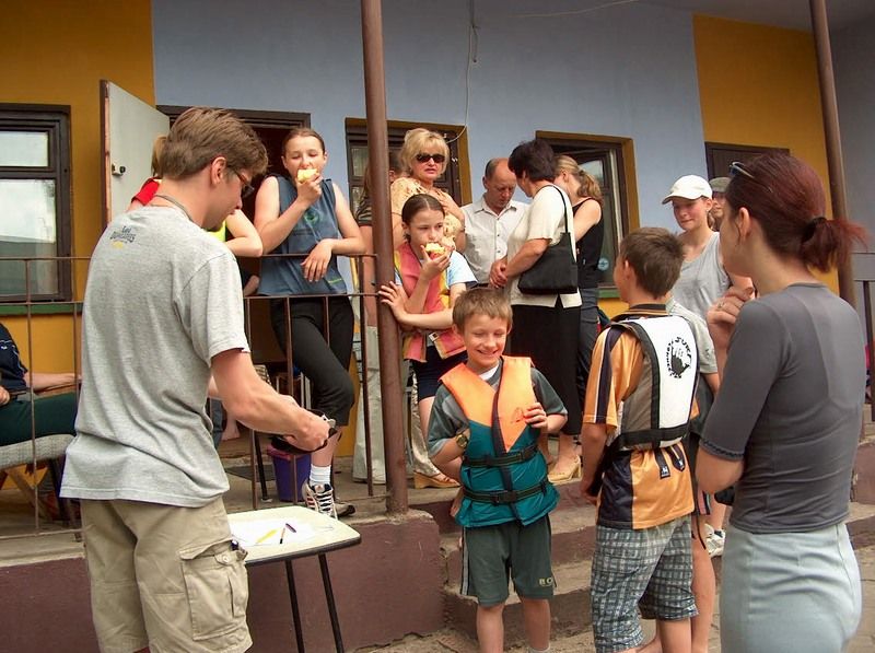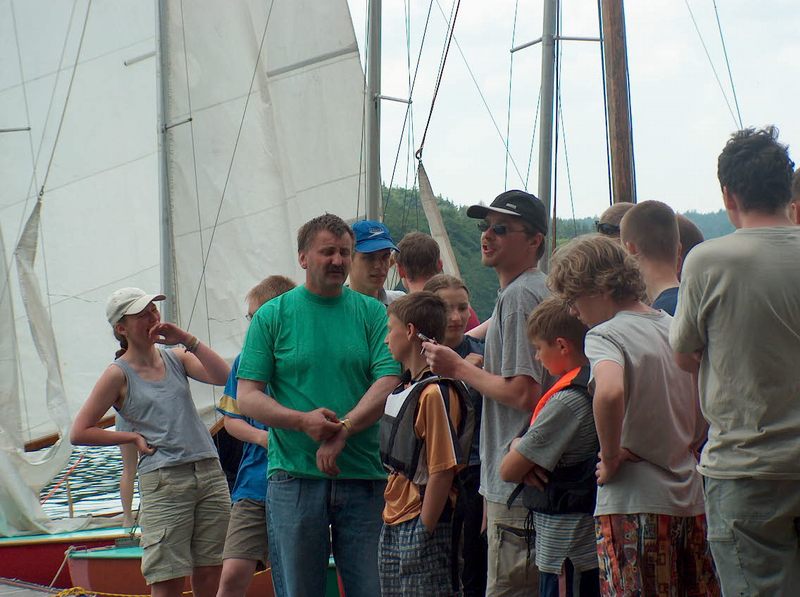 Sędzia objaśnia trasę regat. Kasia Raczkowska zajmuje się oczywiście czymś innym. Później dzwoni z łódki i pyta: "Gdzie płynąć???"