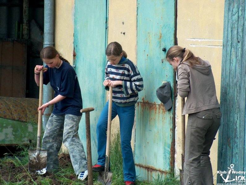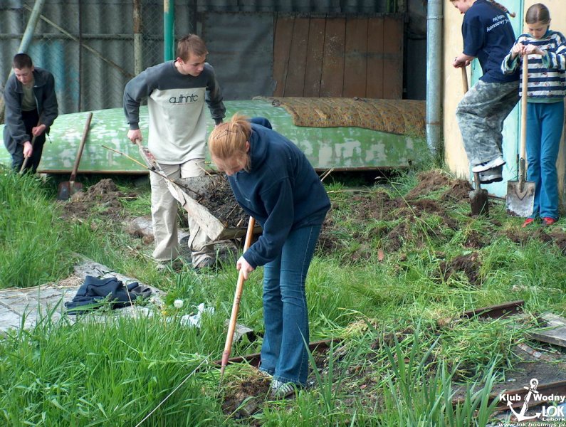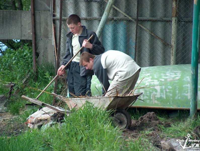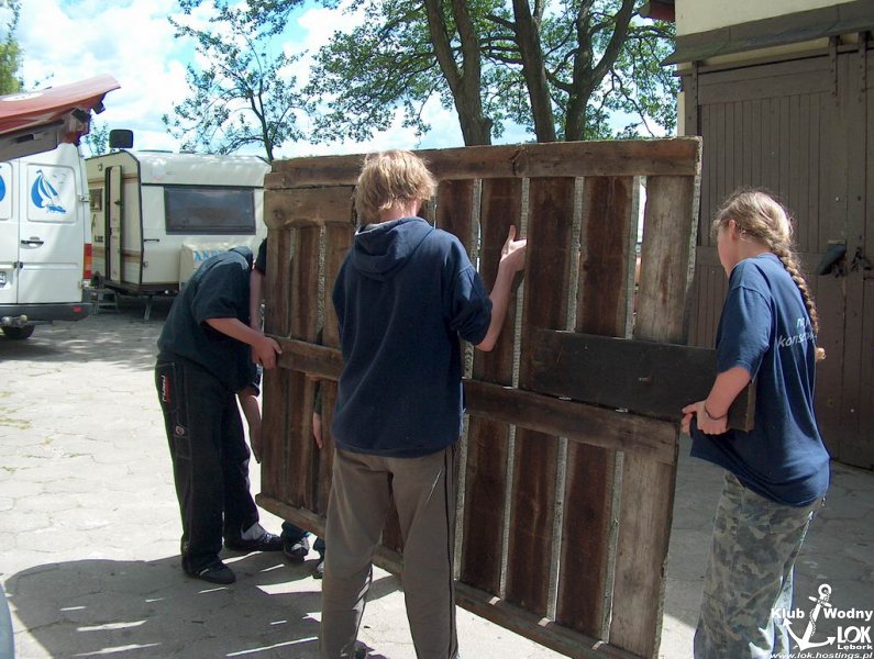 Młodzież pracuje.... Na wodzie kołysze się nowy OPTYMIST pozyskany z miasta.