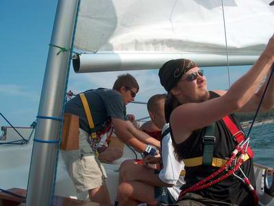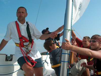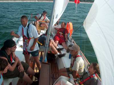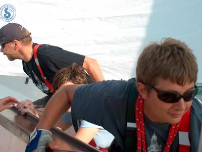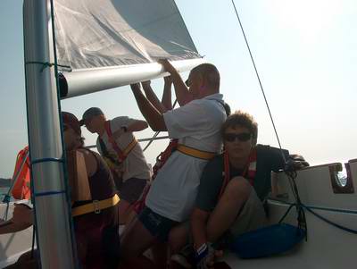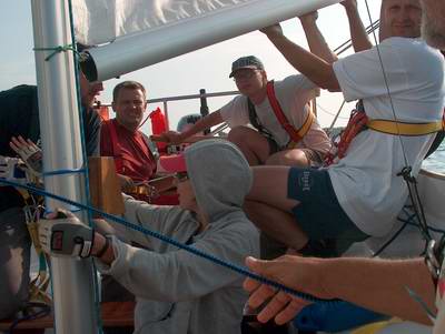 Bezan jest najskuteczniejszym elementem zacieśniania cyrkulacji (ster na burt sobie darowaliśmy w tym ćwiczeniu). A że jest to kawał szmaty stąd taka liczna obsada na bezanie. ;)