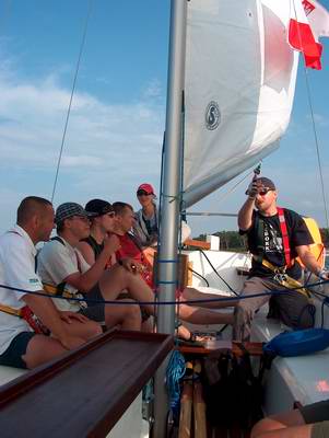 Dziś przyleciał z USA amerykański instruktor żeglarstwa. Na manewrach go nie było. Zmęczony. Kilka godzin lotu i różnica czasowa. Ciekawe czym różnią się szkolenia amerykańskie od polskich? Zobaczymy!