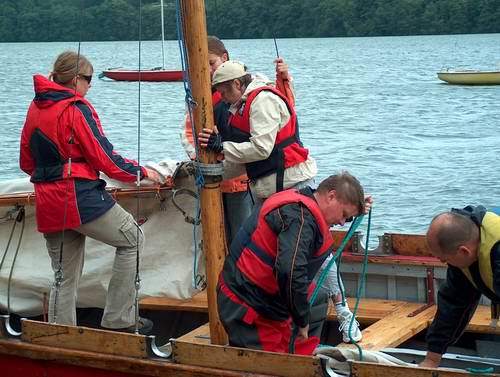 Dziś kursanci zaczęli doceniać (praktycznie) działanie bezana. W szkwale nic nie da wyłożenie steru na zawietrzną (próba odpadania). Bez zluzowania bezana operacja taka skazana jest na niepowodzenie. Było to świetnie widoczne, gdyż celem było trafienie nawietrzną burtą w styropianową boję. Brak szybkiej reakcji skutkował zejściem z kursu o parę metrów.