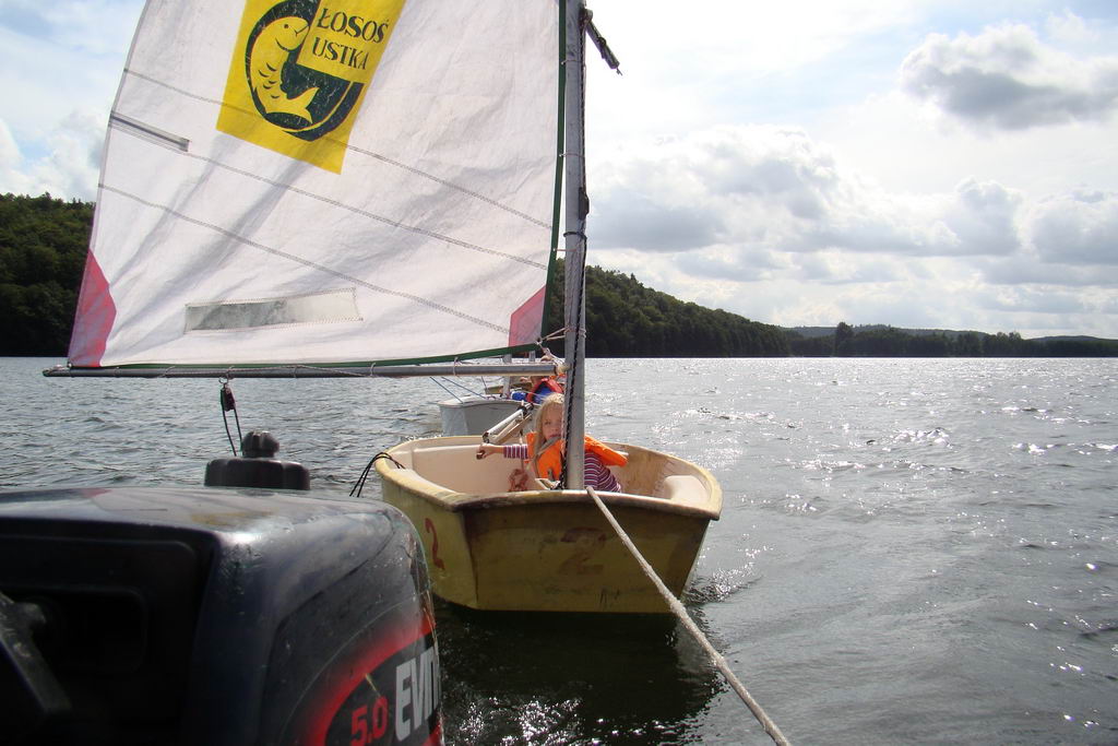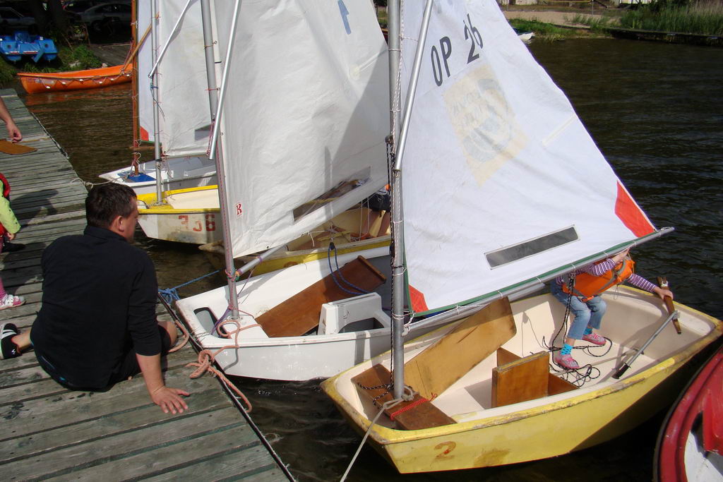 Kolejne zajęcia dla najmłodszych. Dziś w programie już pływanie z żaglem, ale jeszcze w kontrolowanych warunkach,