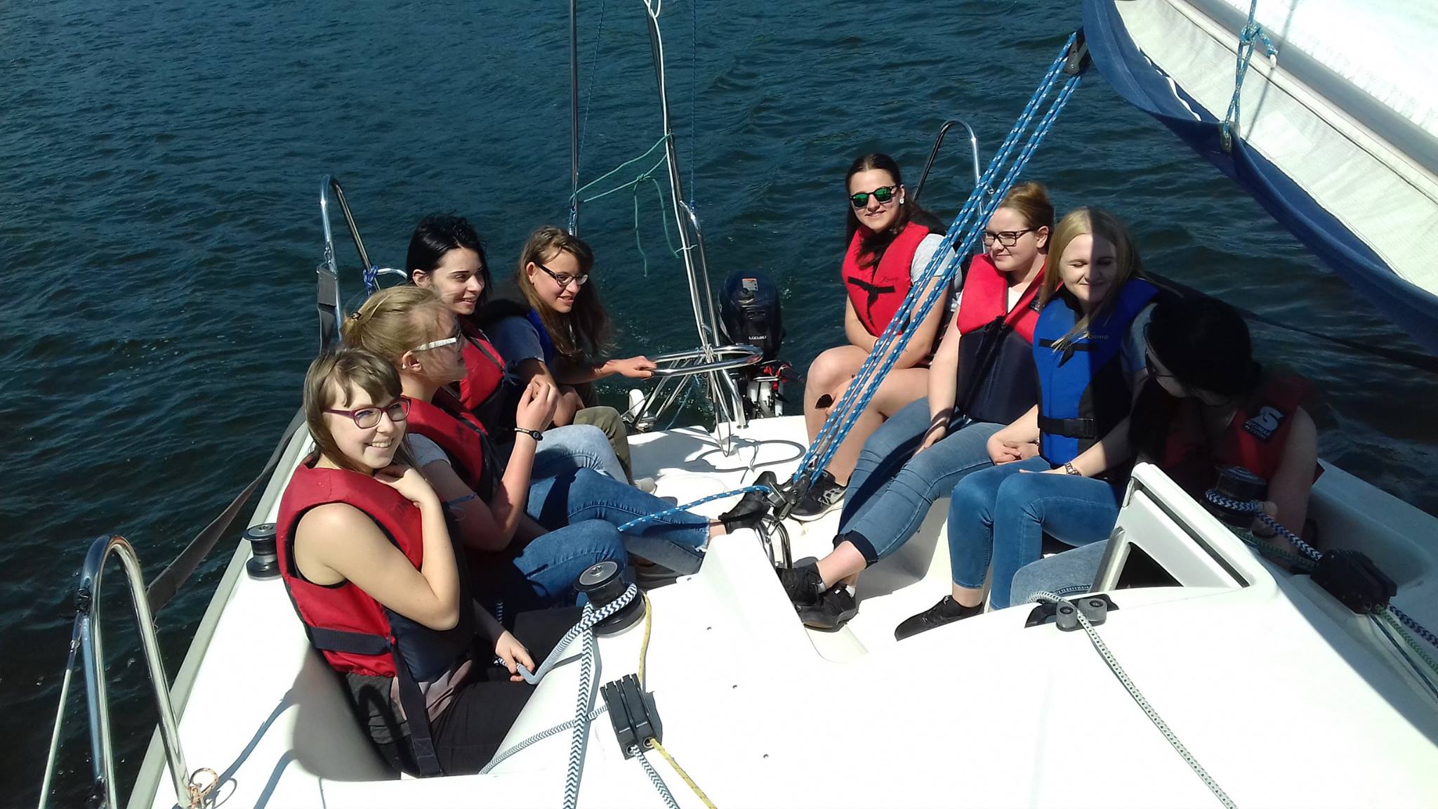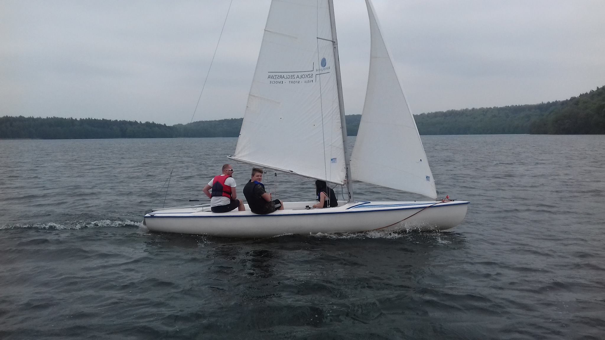 "Zajęcia żeglarskie SGJ na przystani CSiR Lębork w Lubwidzu. Zapowiadał się upalny, bezwietrzny dzionek, ale dzięki Odynowi, najpotężniejszemu z bogów, nadciągnęły chmury i cudnie powiało. Młodzież miała sporo emocji, bo przechyłów nie brakowało."