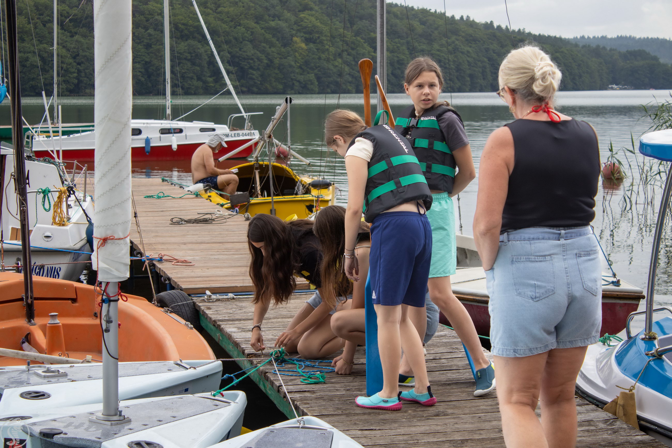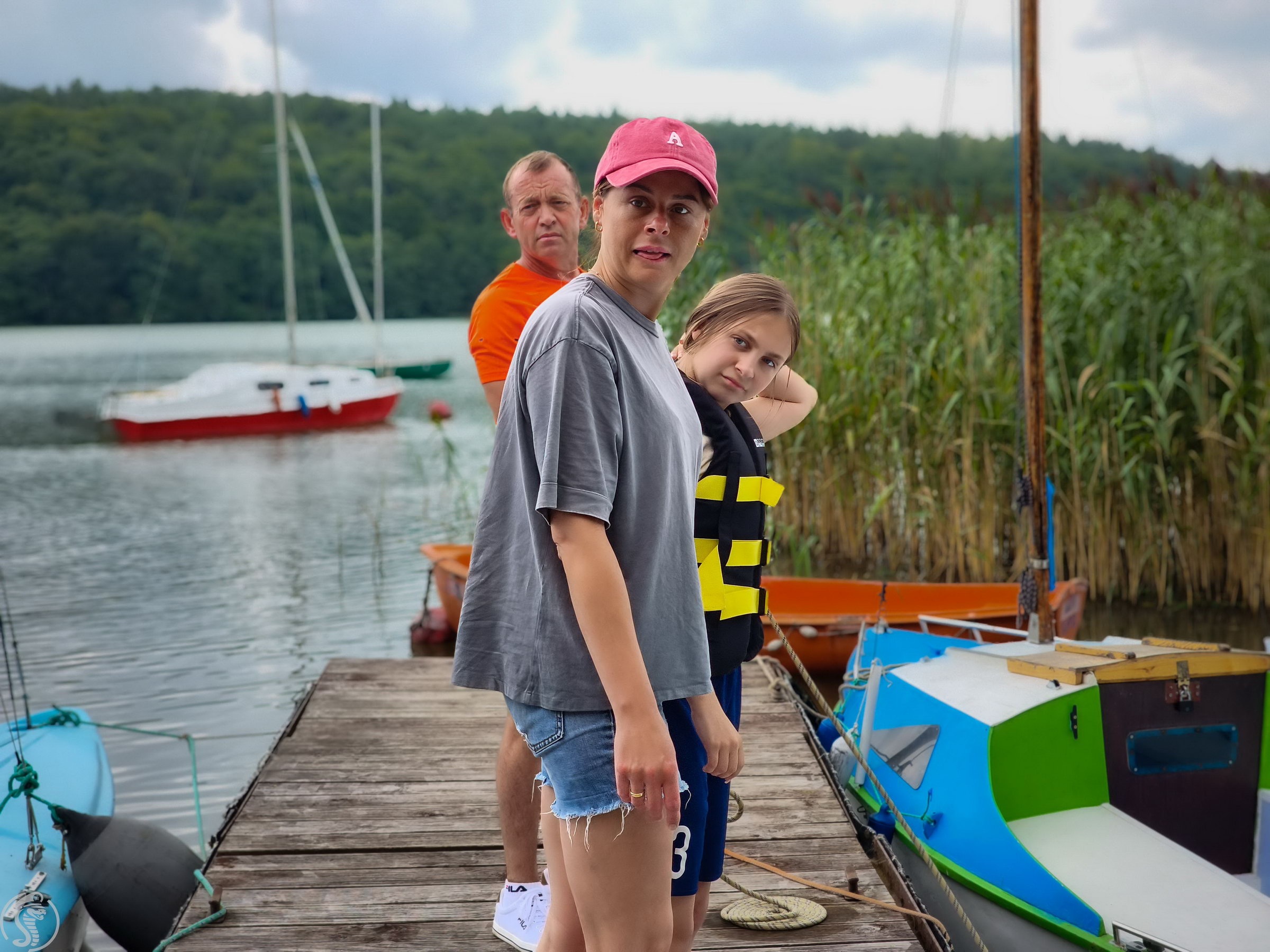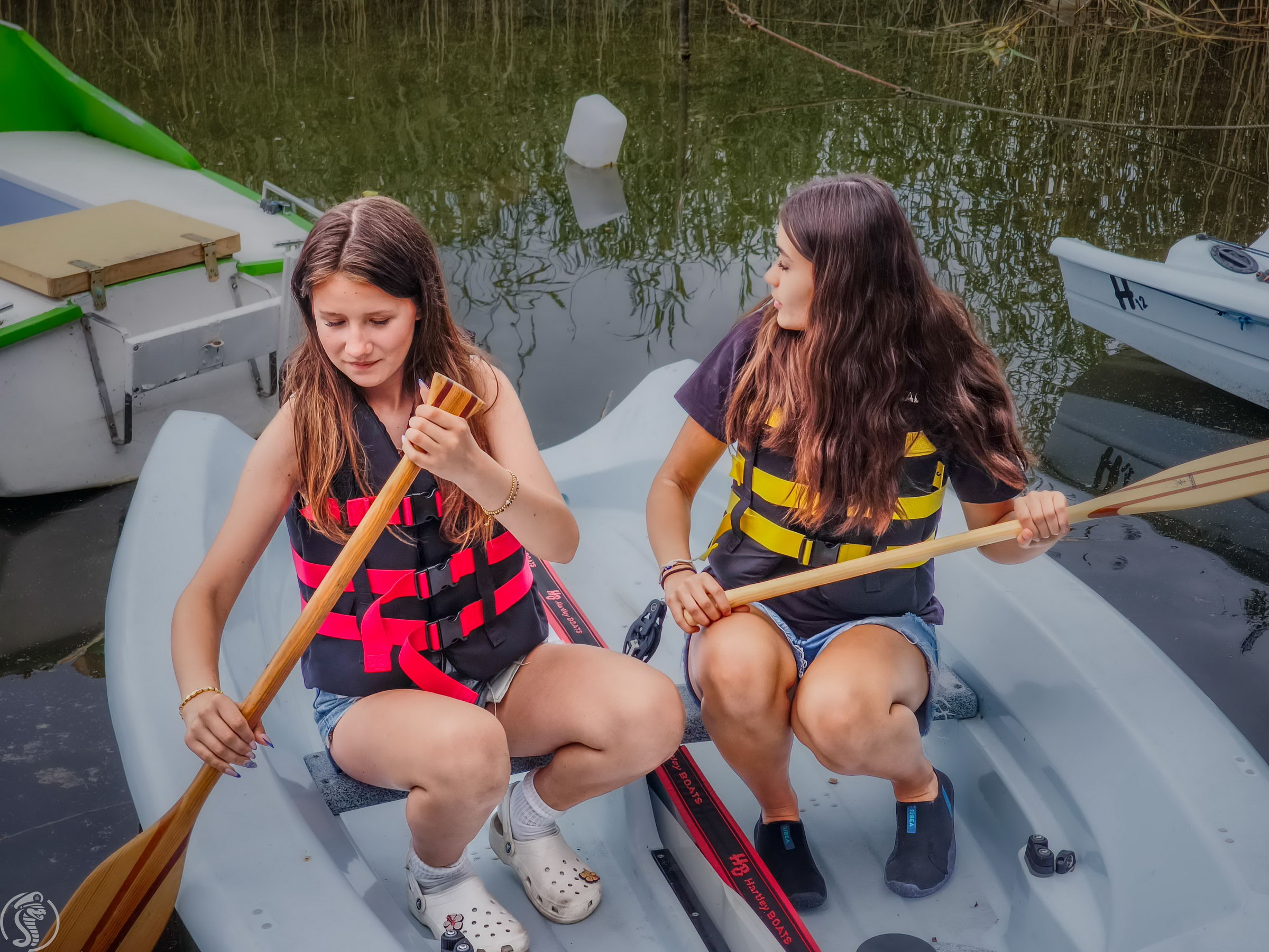 Gabrysia i Hania miały kontakt z łódką. Lena już pływała.