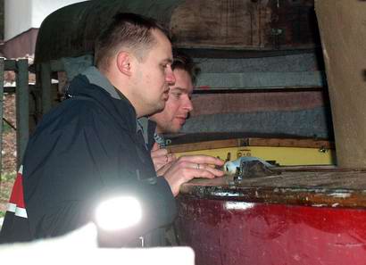 Na zdjęciu zdejmujemy parę wymiarów, głównie gdzie dać wzmocnienia... Kuba jako najlżejszy siedzi w łódce
