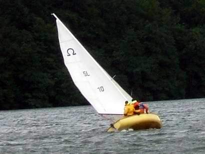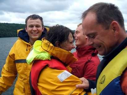 Nad jeziorem wiatr 5B w porywach 6-7B. Takie porywy wymagają dużej czujności od sternika oraz załogi.