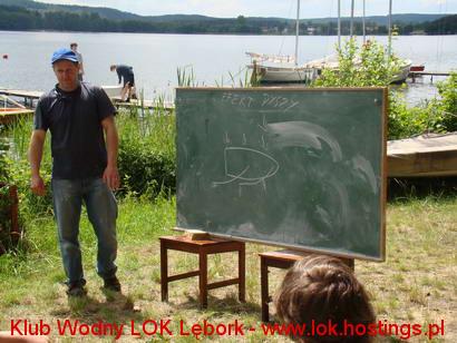 Wykłady w plenerze. Na zdjęciu Kierownik Wyszkolenia Żeglarskiego - Instruktor Żeglarstwa PZŻ kol. Marek Woźniakowski (jednocześnie kierownik przystani od miesiąca ;)