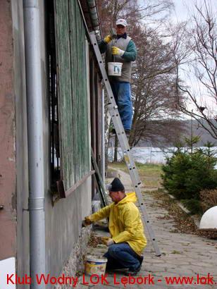 Jarek i Arek wzieli się za gruntowanie elewacji. Nakładem klubowych środków zostały wytynkowane wraz z siatką wzmacniającą te ściany, które najbardziej narażone są na erozcję i zwykłe łatanie nie miało sensu.