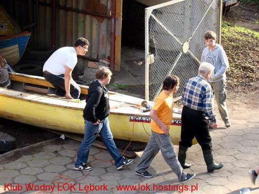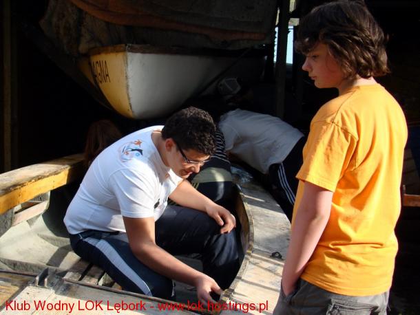 Młodzież pod kierunkiem Marka Woźniakowskiego przygotowywała pokład omegi do lakierowania.