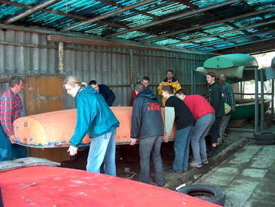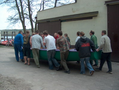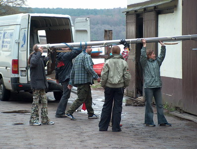 Pomału zjeżdża sprzęt (maj 2003) Kaśka się uwiesiła masztu od omegi zamiast dźwigać ;)