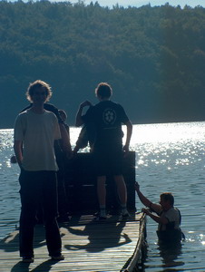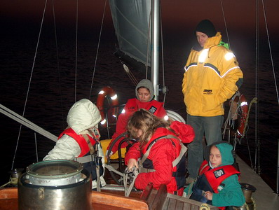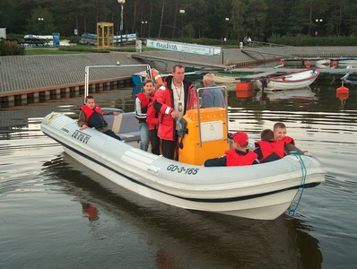Rejsy morskie z młodzieżą (2005). Andrzej Strzechmiński zafundował dzieciakom dodatkową atrakcję - wypad na morze na zachód słońca łodzią motorową