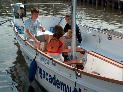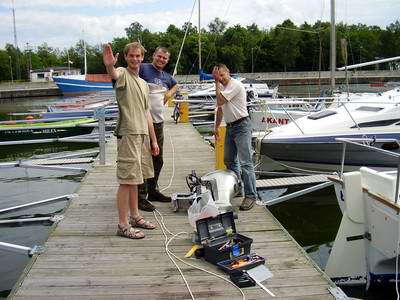 Marek, Roland, Śmigło i ojciec Marka wykonują ostatnie szlify. Montaż silnika jest niezbędny by Hubania uzyskała dopuszczenie do żeglugi w obszarze 6Mm od brzegu.
