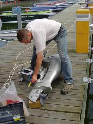 Próba silnika w marinie. W marinie silnik sprawuje się dobrze (Honda 10KM Four-stroke).
