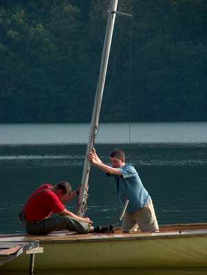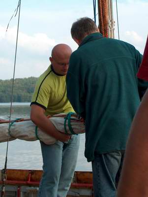 Na DeZecie bezanmaszt wymaga konserwacji. Żagle tradycyjnie do przejrzenia.