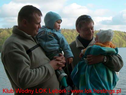 Konfrontacja przyszłych współzawodników w klasie optymist: Cyprian Ramczyk i Ewa Tarnowska (z tatusiami).