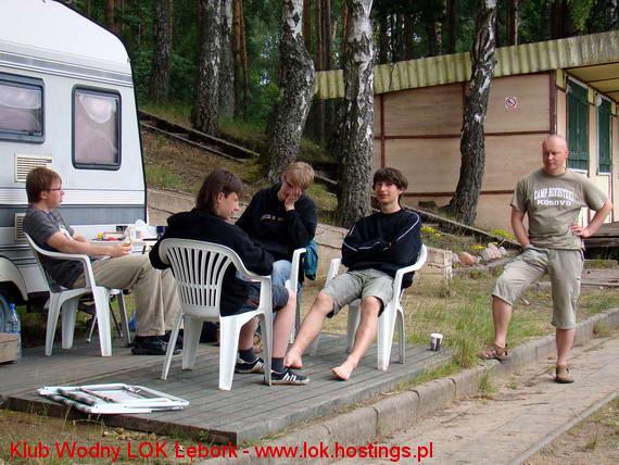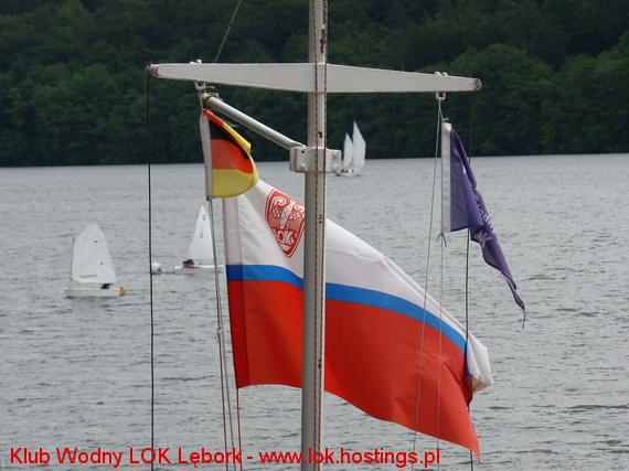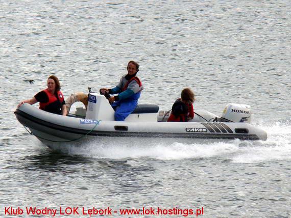 Motorówka asekuracyjna z UKS Łeba prowadzona przez Wiesława ?..., wraca z akcji podnoszenia omegi po wywrotce. Prowadzący (jeden z rodziców szkolących się w UKS Łeba dzieci) miał wywrotkę. Niezabezpieczony fok spoczął na dnie jeziora. Jutro kol. Bartek Chyży będzie ze sprzętem nurkowym i będzie próbował odnaleźć ten żagiel. W przypadku niepowodzenia prowadzącego czeka wydatek na nowy żagiel. Stosowne oświadczenie zostało spisane.