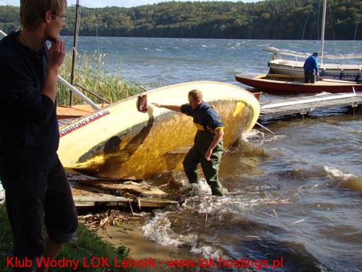 Na jeziorze zrobiła się całkiem spora fala jak na jezioro. Nawet wyjęcie kulistych boi stanowiło mały problem.