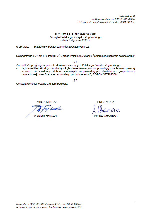 Poniżej uchwała zarządu PZŻ w sprawie członkostwa LKW w PZŻ.