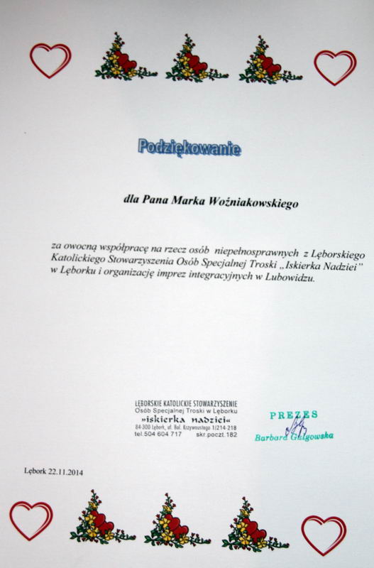Stowarzyszenie przygotowało podziękowania dla osób, organizacji, które wspierały Iskierkę w jej działalności.