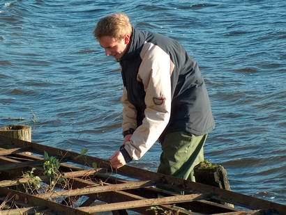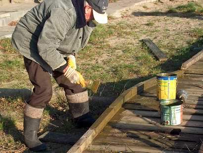 Na przystani konserwacja pomostu....