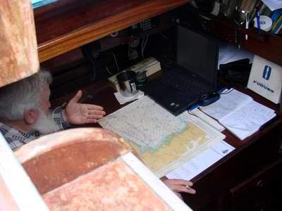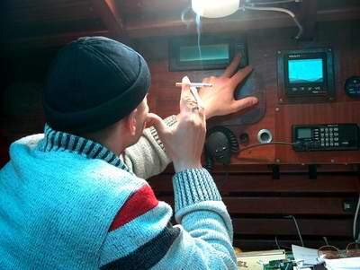 Kapitanowi spodobała się nawigacja elektroniczna. Jak wyłączaliśmy laptopa by oszczędzać energię to jednak mu nie pasowało. Człowiek się przyzwyczaja do wygody. Nawet z kokpitu jeden rzut oka i wiedzieliśmy co, gdzie i jak, bez