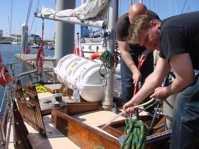 Podczas odpływu trzeba było włazić na keję jakieś 4m. To nie było dobre jak się wracało z nocnej wycieczki. He jak sobie przypomnę że ktoś wiązał ratowniczy na sobie bo zapomniał jak się to robi w rękach... Hafelmajsetr i jego pomocnik rzucili się trzymać linę bo bali się że gościa ściągnie z nabrzeża (wówczas chyba ze 6m wysokiego) łajba która ważyła z 5T ;)