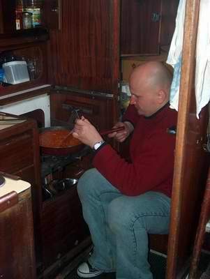 DJ Dariusz zapuszcza shanty z laptopa. Ciekawe kiedy na tym jachcie zamontują porządne radio (samochodowe) z przyzwoitymi głośnikami w mesie. Przydałoby się nie tylko do odsłuchiwania prognoz.