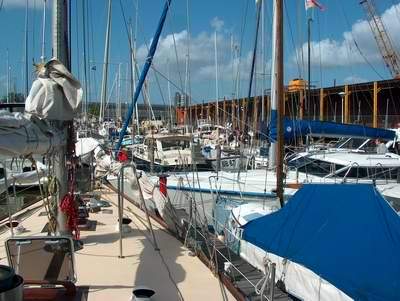 Sixhaven - marina w sercu Amsterdamu (naprzeciwko dworca centralnego). Potwornie zatłoczona. Jak myśmy się tam zmieścili - nie wiem.