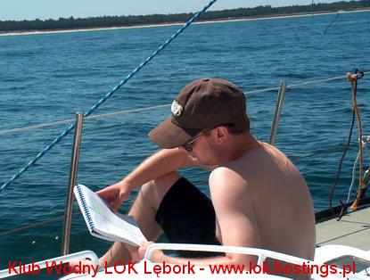 Rano wypasne sniadanko. Marek dzwonil do kapitanatu w Lebie. Poglebiarka nie pracowala - jakas awaria. Planowane wejscie do Leby staje pod znakiem zapytania. Najblizszy port na trasie do którego z naszym zanurzeniem (1,95m) mozemy wejsc to Ustka. Szyna ma jakis egzamin a wiec wysiada we Wladku. Nie lubimy wchodzic do Ustki, bo tam nie ma nic dla zeglarzy.