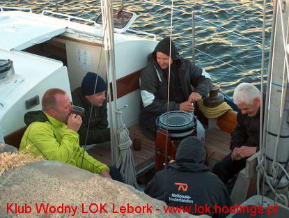 Ta jazdę należalo uczcić. Tak tez zrobilismy, aczkolwiek delikatnie, bo zmęczenie bylo spore a na drugi dzien perspektywa halsówki przy 4-6B z kierunku W do Wladyslawowa lub Helu. Przewidywalismy na te operacje 30h.