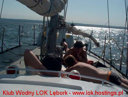 Rankiem chlopaki byli mocno wkurzeni, ze nie ma sie gdzie wykapac. Zlazili cale miasto (Ustka). Nawet bylu pomysly ze zdecydujemy sie wziac pokój z lazienka tylko po to by sie po kolei wszyscy wykapali. Juz wczesniej padaly takie teksty, ale nie sadzilem ze do tego dojdzie. Chlopaki poszli do Urzedu Miasta w Ustce z "prosba" by wyslali Straz Miejska z bloczkiem mandatowym na keje miejska, bo 9 chlopa bedzie zalatwialo swoje potrzeby w tym wlasnie miejscu z braku innych mozliwosci. W miedzy czasie dowiedzielismy sie ze wlasciciel lokalu mial warunek ze dostanie pozwolenie na jego wybudowanie gdy zbuduje równiez punkt dla zeglarzy (oczywiscie platny). Tak tez zrobil, tyle ze od 3 lat ten punkt jest zamkniety a facet wyciaga raz w tygodniu kase z automatu przy drzwiach, która wrzucili naiwni żeglarze.