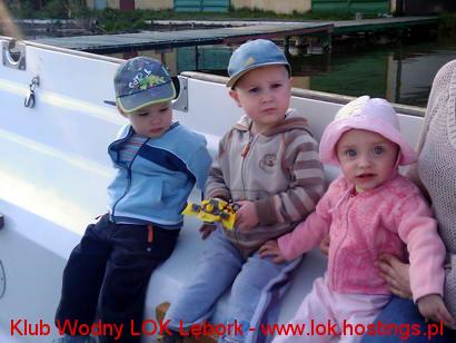 Prawie najmłodsi klubowicze ;). Dzieci najstarszych instruktorów w klubie... nie mają wyjścia. Długi weekend spędzają na łajbie ;)