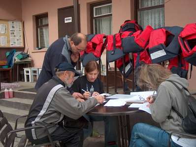 Komisja sędziowska przyjmuje zapisy. (Co ciekawe klubowicze przyjechali 15 min przed startem). Iwa pełni funkcję skarbnika klubu (Karo doszkala się)