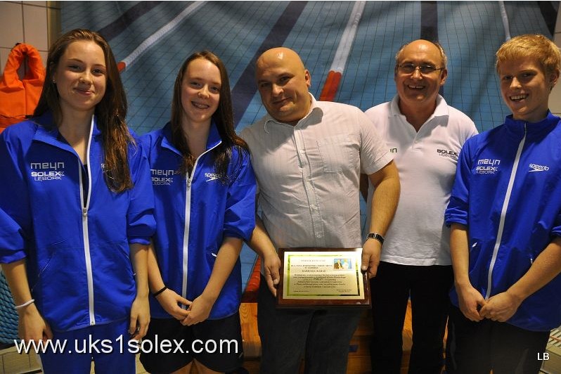 Na zdjęciu m.in. komandor techniczny Dariusz Karaś jako reprezentacja firmy MEYN POLSKA Sp. z o.o., głównego sponsora lęborskiej sekcji pływackiej ....