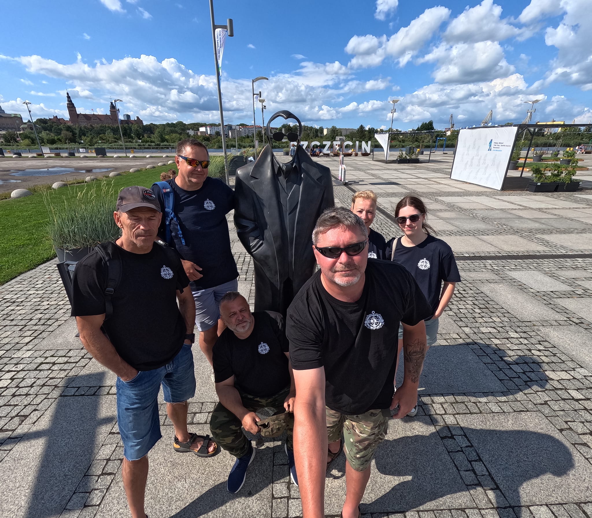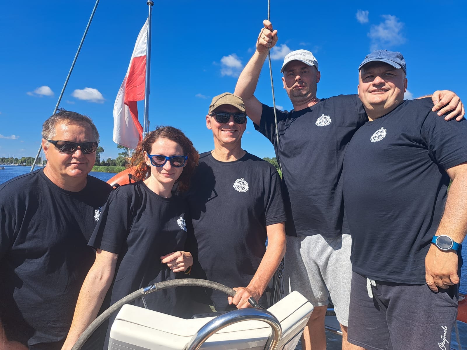 Załoga GRANA część II przesyła fotkę w koszulkach rejsowych Lęborskiego Klubu Wodnego.