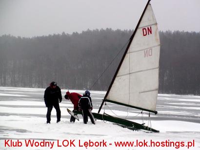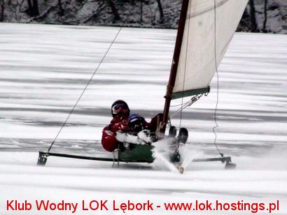 Dziś wiało w porywach do 7B!!! Mimo zalegającego gdzie-niegdzie śniegu na lodzie dało się polatać. Nawet parę razy na dwóch płozach. Tępe mamy te płozy - trzeba naostrzyć bo na czystym lodzie idzie bokiem ;)