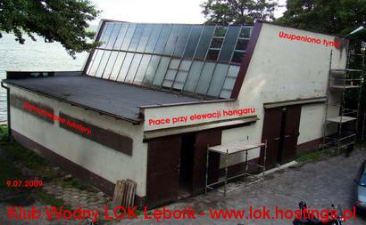 Dzisiaj 30.07.2009 postęp prac na przystani oglądał prezes LOK Grzegorz JARZĄBEK oraz dyrektor BZW LOK w Gdańsku Paweł Łuczak. Zostały wymienione drzwi na małym hangarze. Malowanie pokoi wziął na siebie kol. Marek Woźniakowski. Łazienka na wykończeniu, taras zrobiony, elewacje, świetlica, magazyny czekają...